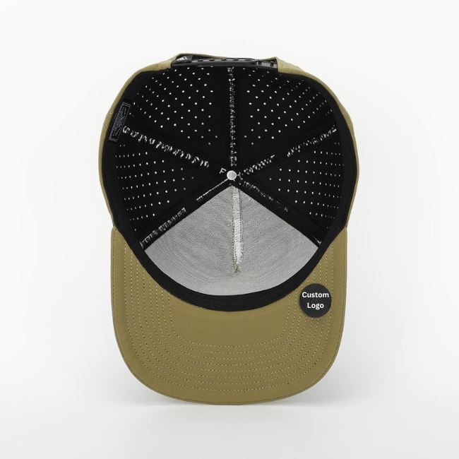 หมวกเบสบอลกอล์ฟมีรูพรุนกันน้ำ5แผงแบบแห้งเร็วมีรูตัดด้วยเลเซอร์ประสิทธิภาพสูงปรับแต่งได้ตามต้องการ