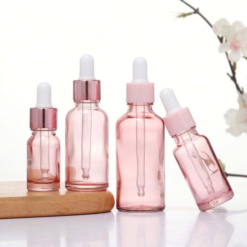ขวดหยดน้ำมันหอมระเหยสุดหรูน้ำมันหอมระเหยสีชมพูขนาด10มล. 15มล. 30มล. 50มล. 100มล.
