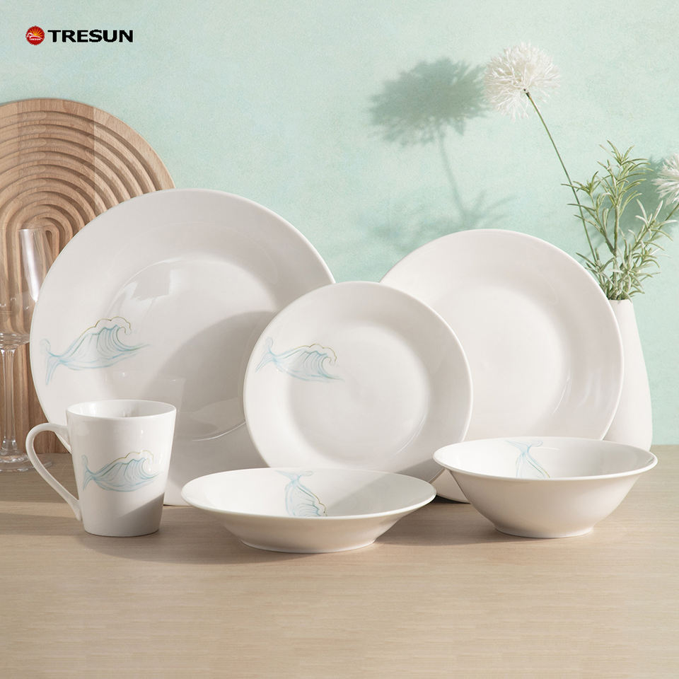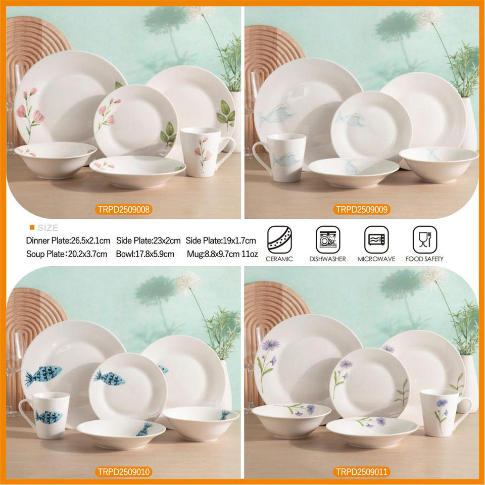 ชุดอาหารเย็นเซรามิกสีขาวลายพิมพ์สี่เหลี่ยม 18/30 ชิ้น สำหรับ 6 คน แบบขายส่งและสั่งทำได้