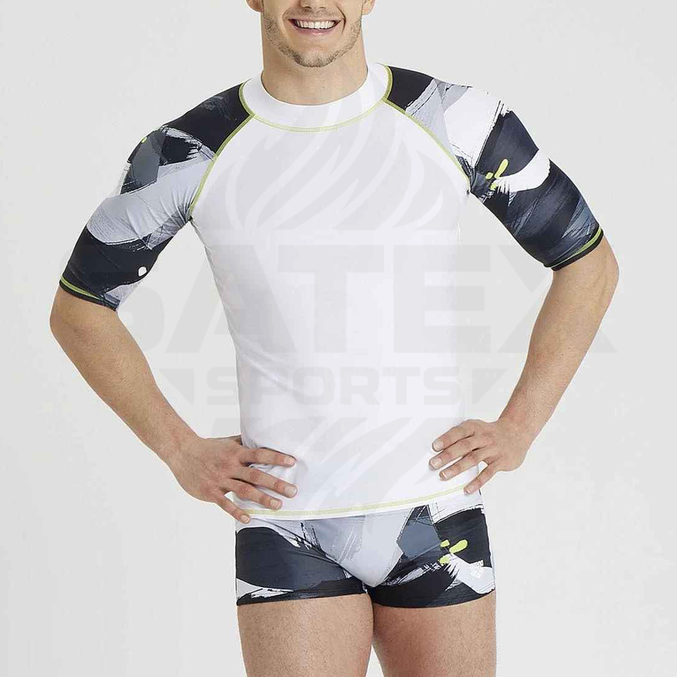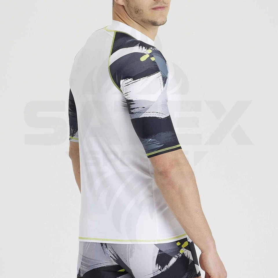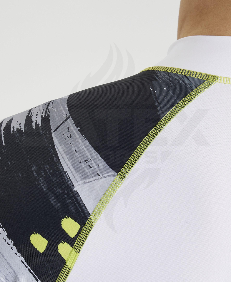 เสื้อรัดกล้ามแขนสั้นป้องกันรังสียูวี UPF50+ สำหรับยิวยิตสูและ MMA ผลิตตามสั่งขายส่ง ผลิตจากผ้าสแปนเด็กซ์/ไนลอน