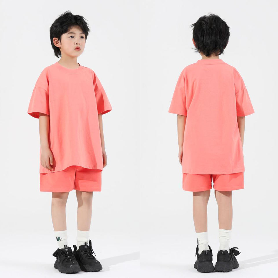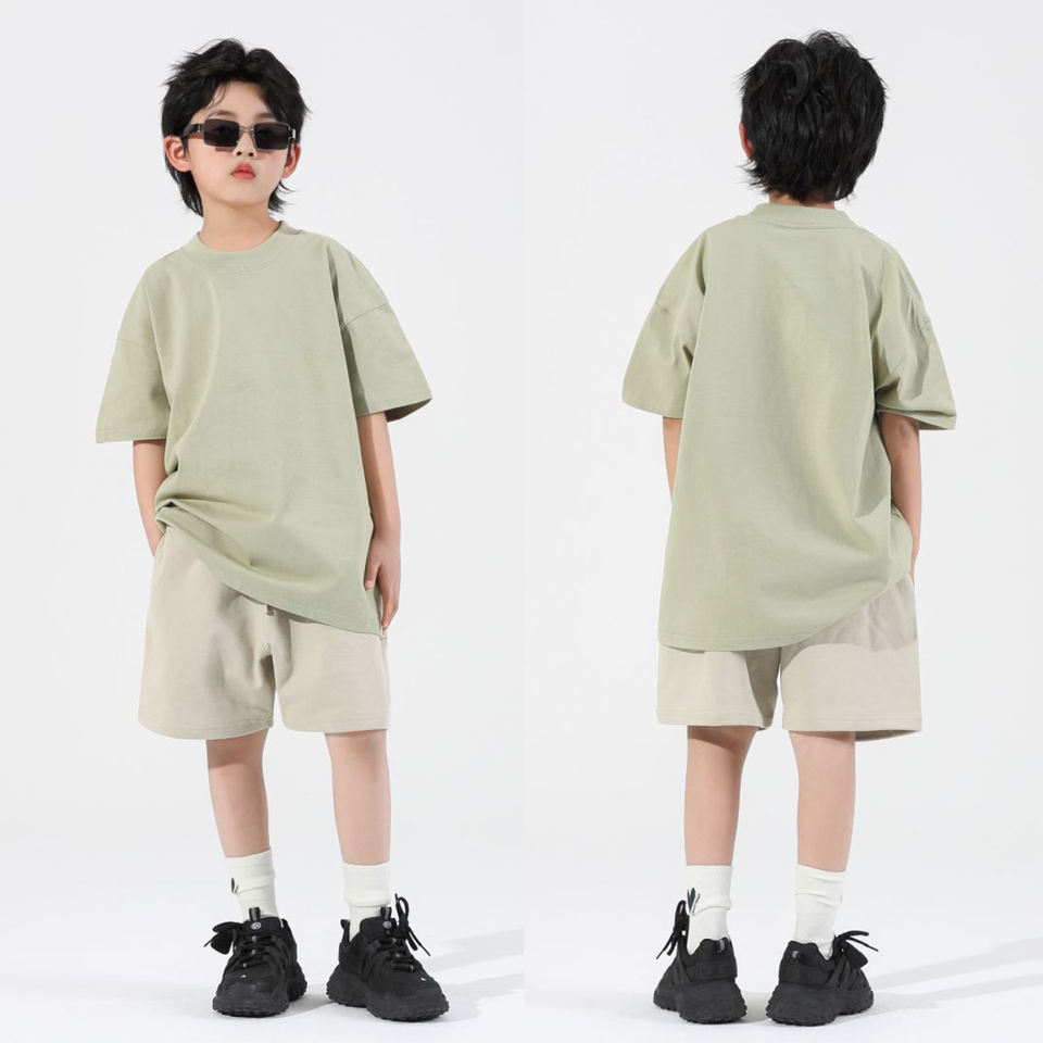 เสื้อยืดสำหรับเด็กผู้ชายสีพื้นพิมพ์ลายปักโลโก้ผ้าฝ้ายสำหรับเด็กออกแบบได้ตามที่ต้องการ