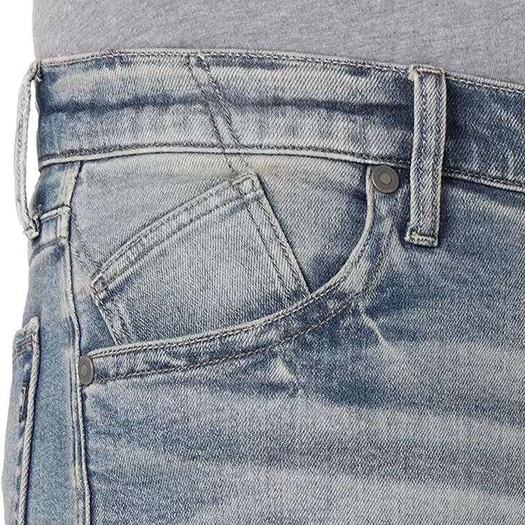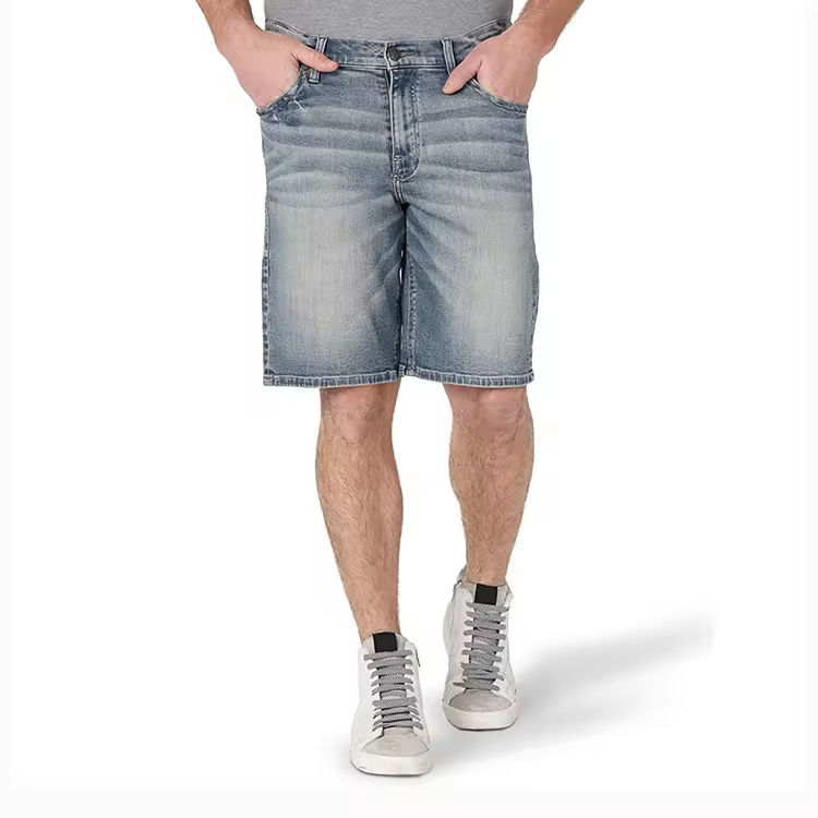 กางเกงยีนส์ขาสั้นผู้ชายสไตล์วินเทจเอวกลาง แต่งกระดุม ระบายอากาศได้ดี ฟอกสีแบบย้อมกรด รับผลิตตามสั่งขายส่ง