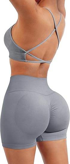 ชุดเล่นฟิตเนส2ชิ้นกางเกงขาสั้นเอวสูงแห้งเร็วคอวีสำหรับผู้หญิงระบายอากาศได้ดี