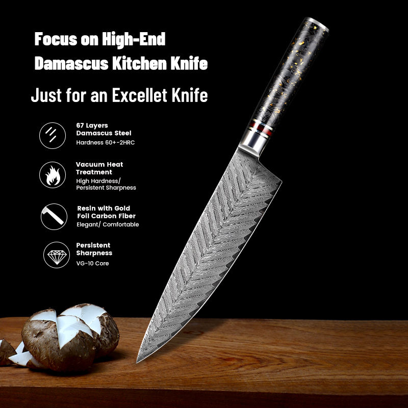 มีดเชฟเหล็กดามัสกัสพร้อมที่จับทำจากเรซินบริการ OEM ODM แบบพิเศษคม