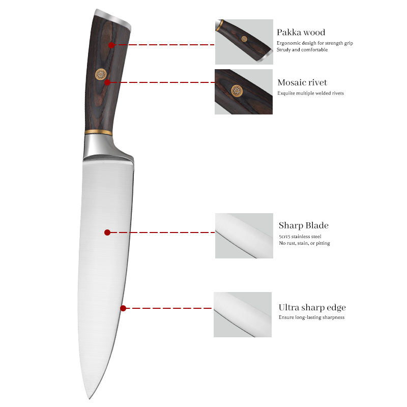 มีดเชฟมืออาชีพทำจากสเตนเลสมีดทำครัวด้ามไม้
