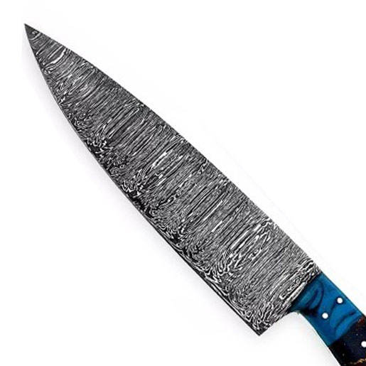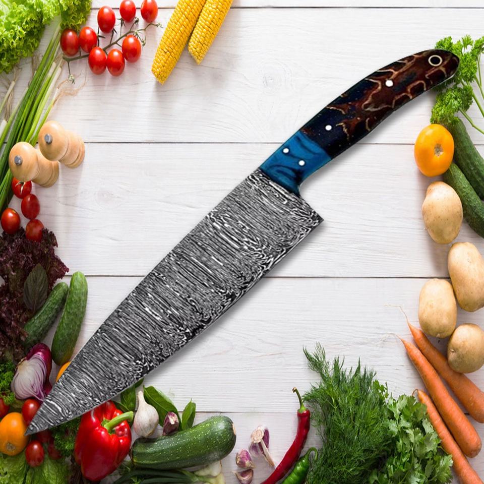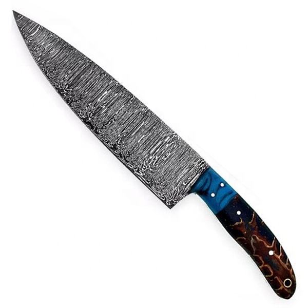 มีดเชฟดามัสกัสด้ามจับเรซินสำหรับเครื่องล้างจานปลอดภัยผลิตแบบมืออาชีพ