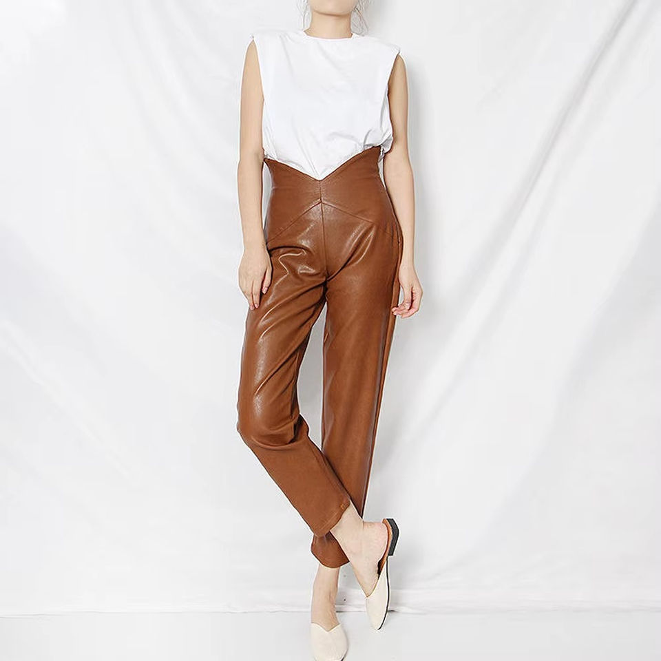กางเกงหนังใส่สบายสำหรับผู้หญิงกางเกงหนังสไตล์อินเทรนด์