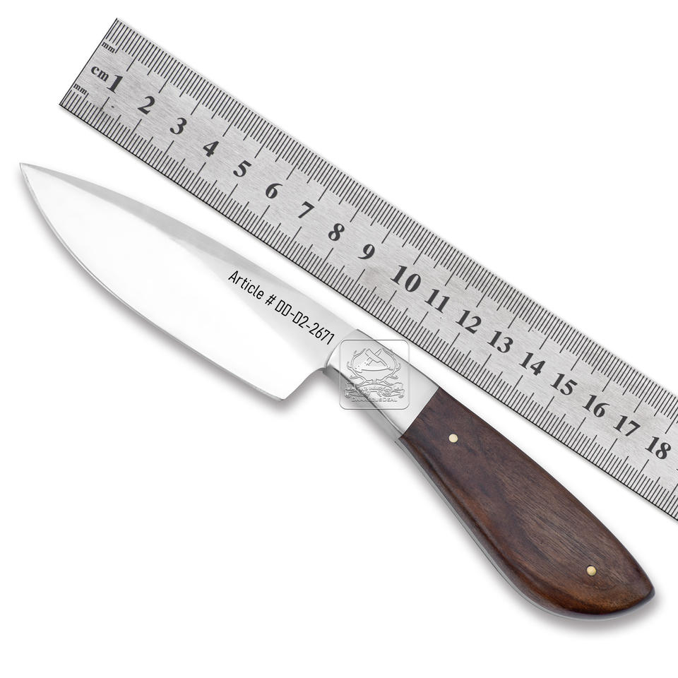 มีดล่าสัตว์เหล็ก D2ทำด้วยมือโมเดล DD-D2-2671แกะลายนูนด้ามไม้วอลนัทแปลกใหม่