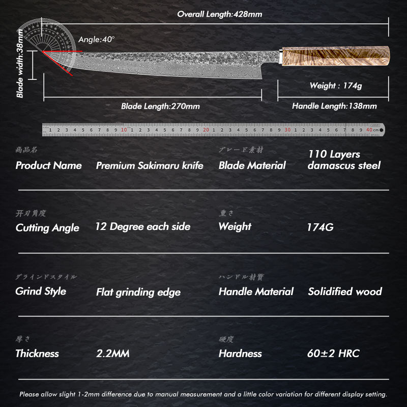 มีดทำครัวเชฟแบบสองมือ ผลิตจากเหล็กดามัสกัสสั่งทำพิเศษ ยี่ห้อ PRESTIGE BLADES ด้ามไม้เนื้อแข็งขัดเงา
