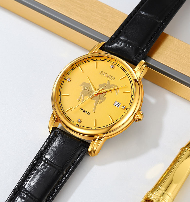 นาฬิกาควอตซ์ SKMEI 2327 รุ่นหรูหราสีทอง พร้อมลาย 12 นักษัตรจีน สำหรับสุนัขและลูกสุนัข รับผลิตตามสั่งขายส่ง