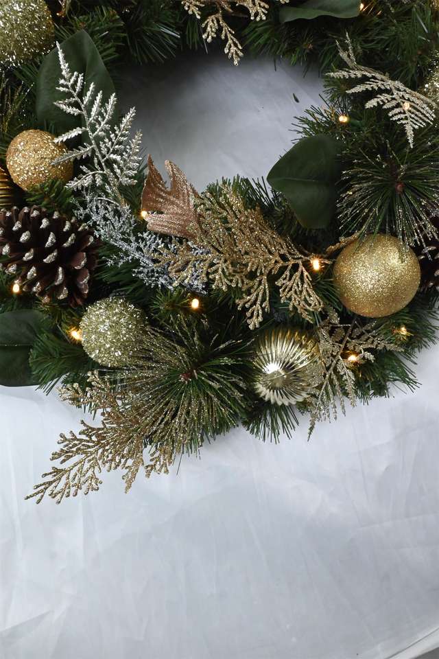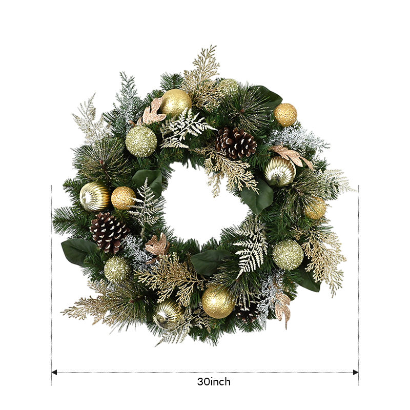 พวงหรีดคริสต์มาสทรงกลมขนาด 30 นิ้ว ตกแต่งประตูตามสั่ง ขายส่ง ลูกบอลพีวีซีประดับตกแต่ง พวงหรีดประดิษฐ์