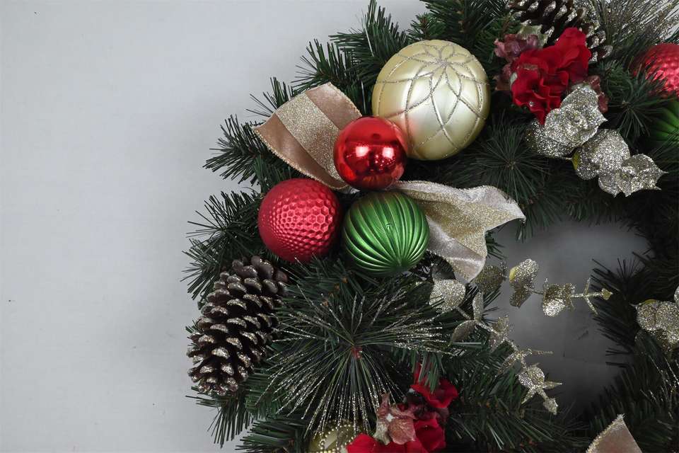 พวงหรีดลูกบอลคริสต์มาสแบบสั่งทำขายส่ง เป็นมิตรกับสิ่งแวดล้อม ปลอดสารพิษ พวงหรีดลูกบอลคริสต์มาสประดิษฐ์