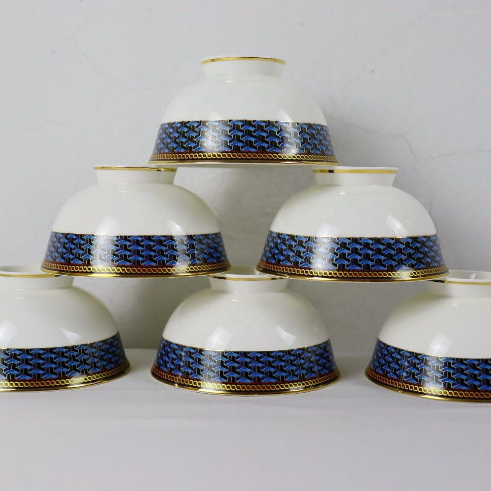 ชุดชามและช้อนเซรามิกสีน้ำเงินและสีแดงสไตล์ยุโรปสุดหรูแบบขายส่ง ปรับแต่งได้ ทนทานและสวยงาม เหมาะสำหรับงานปาร์ตี้