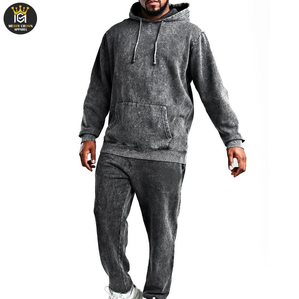 เสื้อวอร์มทรงกรดมีฮู้ดสไตล์ฮิปฮอปกางเกงวอร์มพิมพ์โลโก้เฉพาะบุคคล