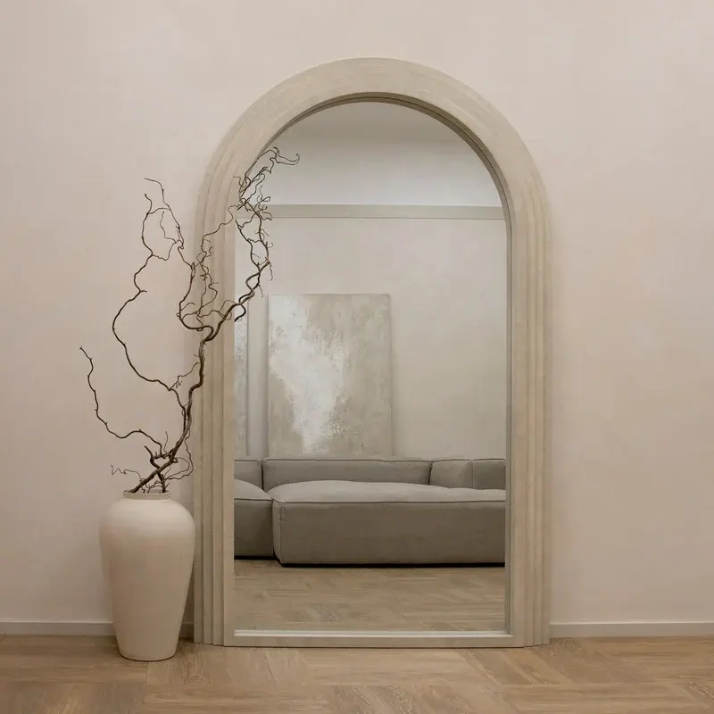 กระจกรูปไข่สำหรับทางเข้าห้องน้ำแปรงทองเหลืองสำหรับร้านเสริมสวย
