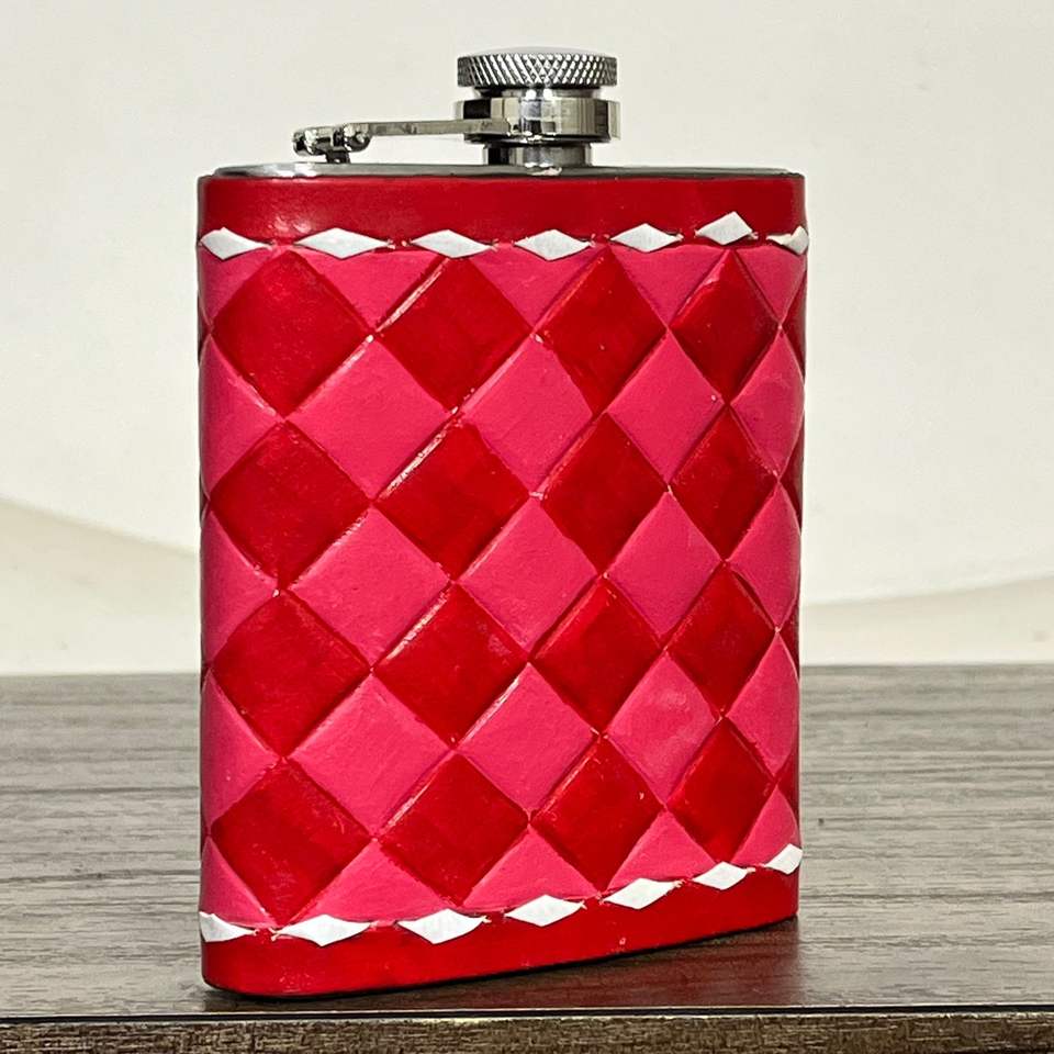 กระติกน้ำสแตนเลสสตีลลายตารางหนังทำมือ