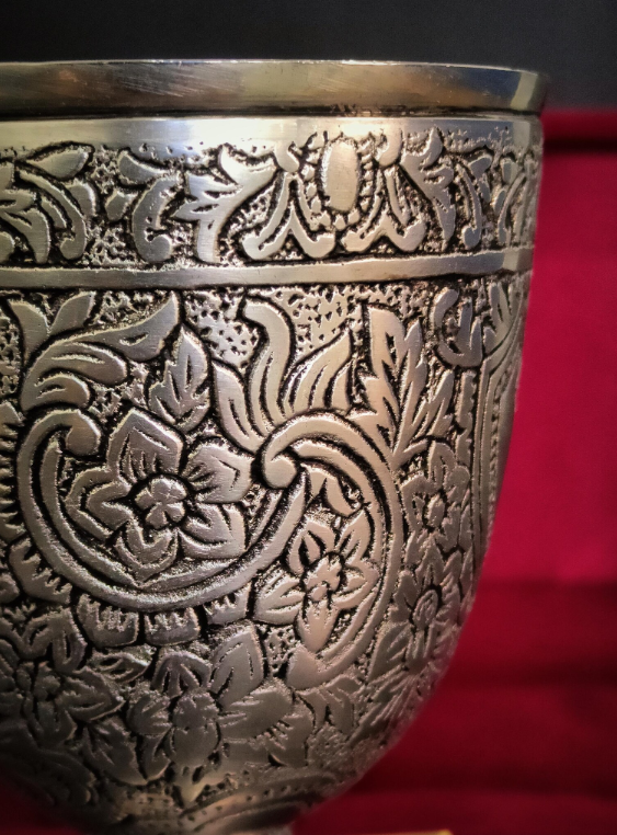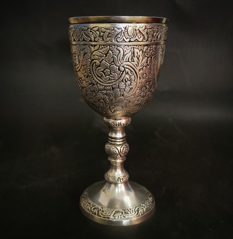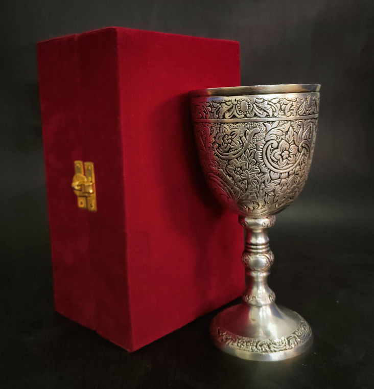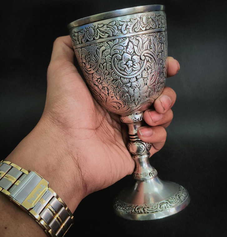 ผู้ส่งออกแก้วไวน์โลหะทำมือแบบกำหนดเองขายส่ง แก้วเบียร์พลาสติกสไตล์วินเทจหรูหรา ดีไซน์ลายนูนทองเหลือง