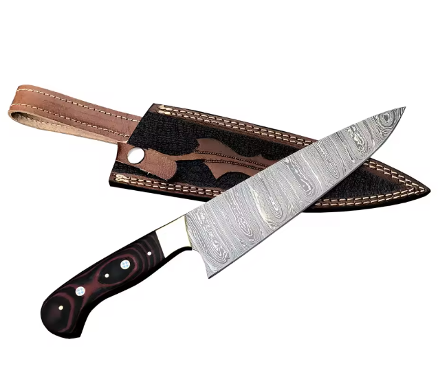 มีดเชฟทำมือคุณภาพสูงแบบสั่งทำขายส่ง ใช้ได้ทั้งมือซ้ายและขวา ดีไซน์ทันสมัย เหล็กกล้าดามัสกัสคาร์บอนสูง ล้างในเครื่องล้างจานได้ รับผลิตแบบ OEM