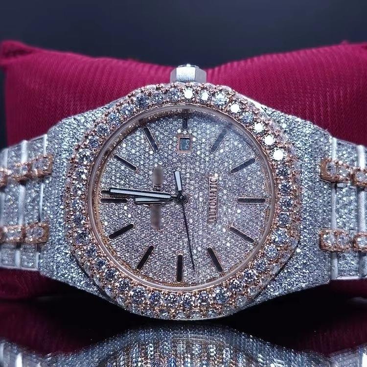 นาฬิกาดำน้ำผู้ชายแบบกลไกคุณภาพสูงสั่งทำขายส่ง ประดับเพชรโมอิสซาไนต์และเพชรแท้ พร้อมเครื่องทดสอบเพชร กันน้ำได้