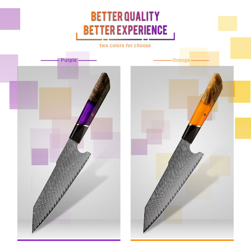 มีดทำครัวเหล็กดามัสกัสใบมีดคมคมคมคมปรับแต่งได้