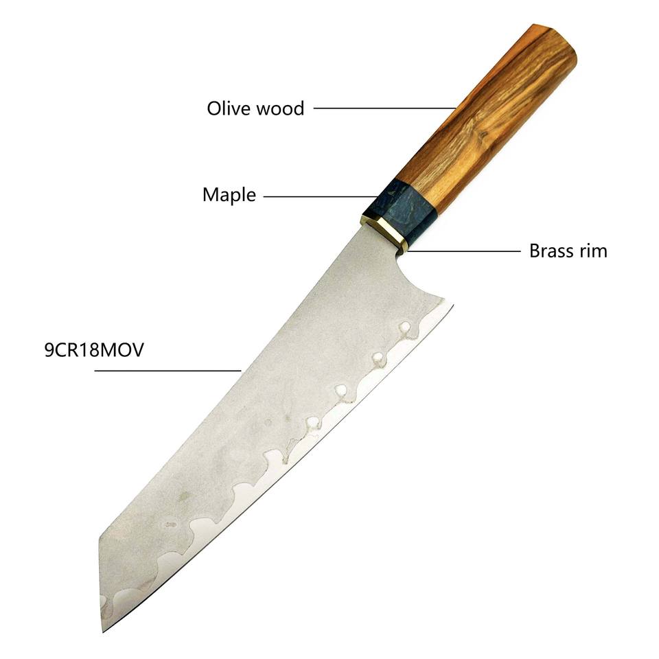 มีดเชฟญี่ปุ่นหั่นไม้มะกอกทำจากสแตนเลสใช้ในครัวมืออาชีพ