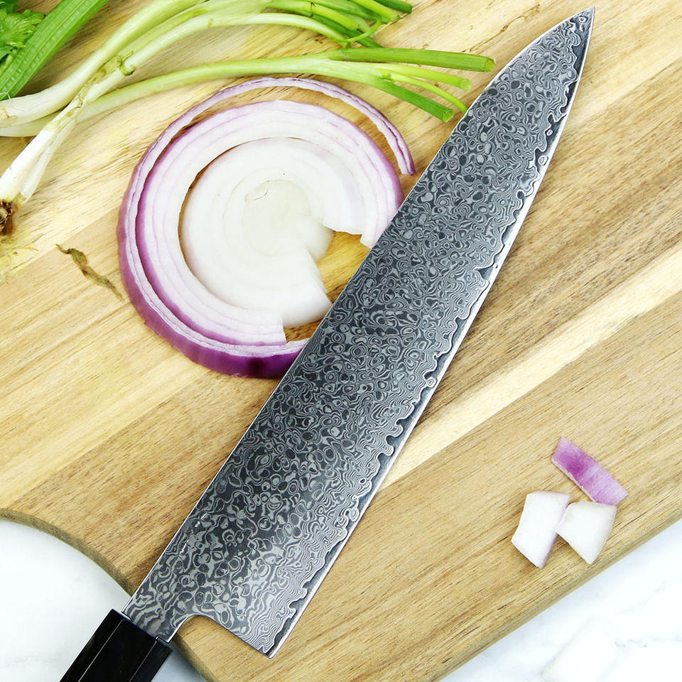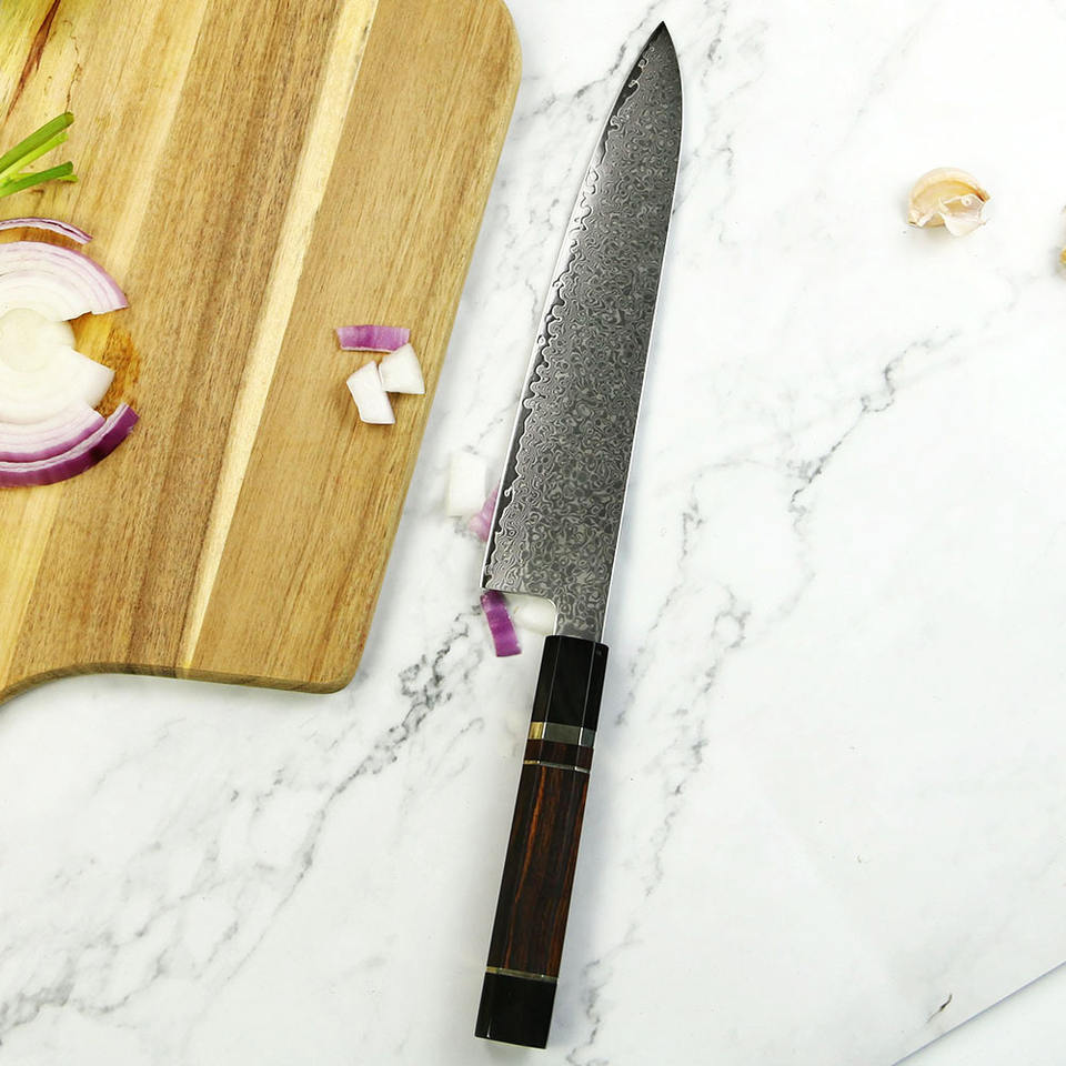 มีดดามัสกัสใช้ในครัวทำด้วยมือพร้อมด้ามจับทำจากไม้แข็ง
