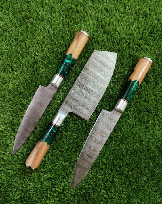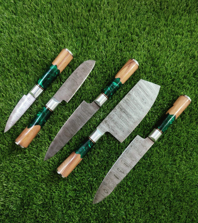 ชุดมีดเชฟเหล็กดามัสกัสทำด้วยมือ5ชิ้นทำจากไม้