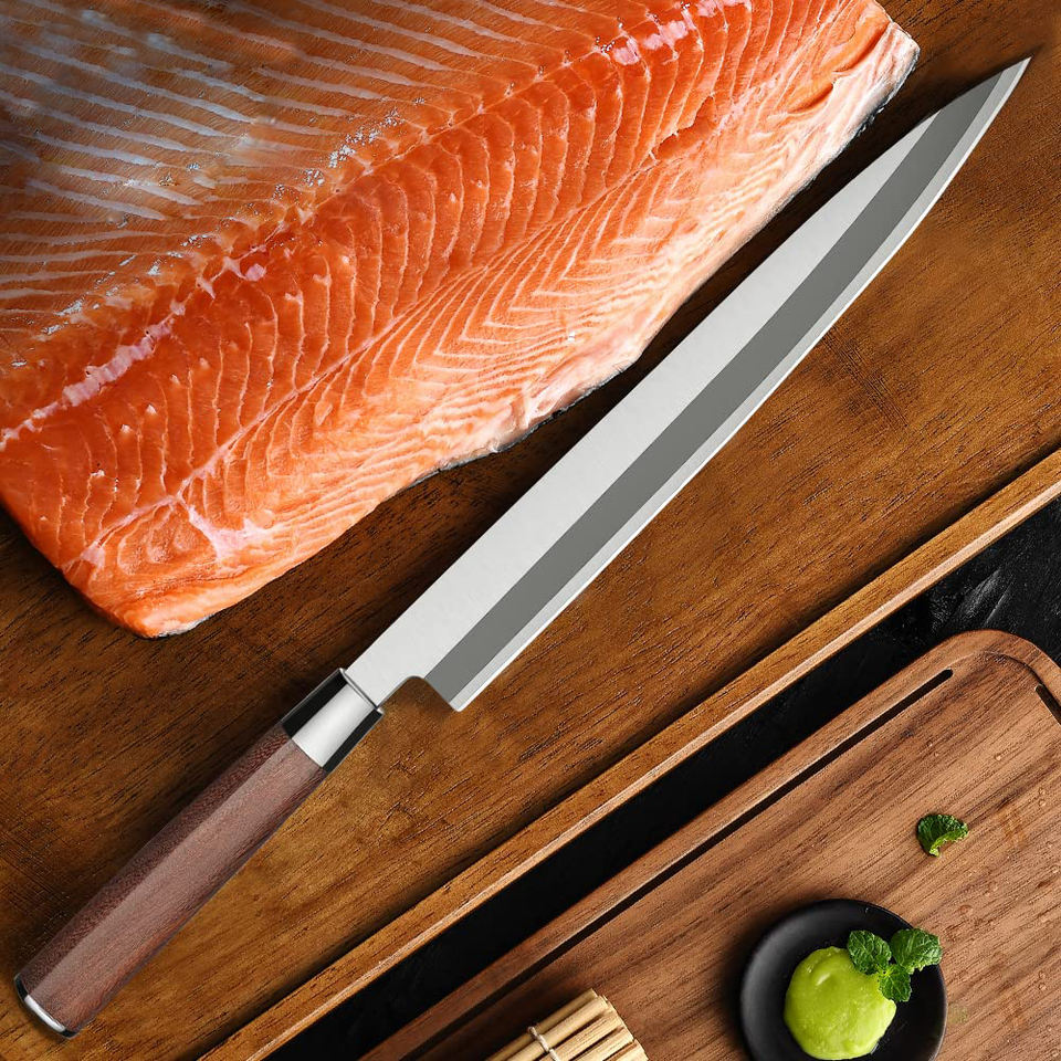 มีดทำครัวสำหรับซูชิและซาชิมิ ด้ามไม้ เหล็กดามัสกัสคุณภาพสูง ผลิตตามสั่ง ขายส่ง