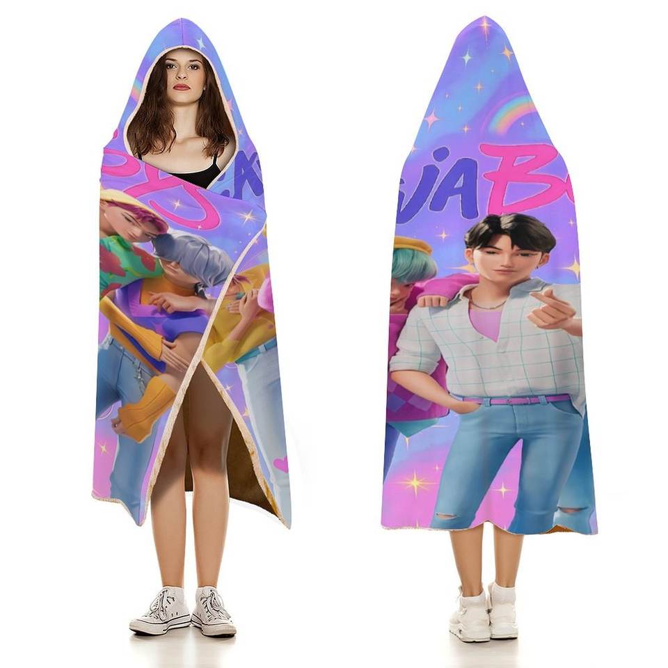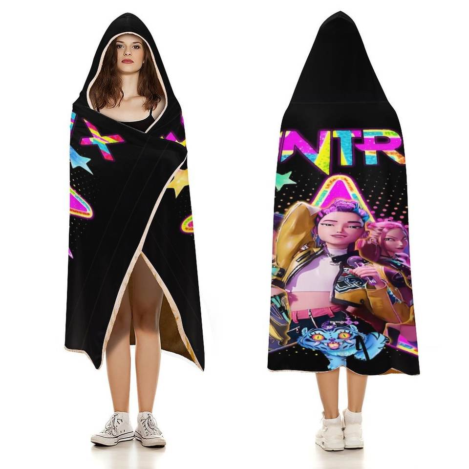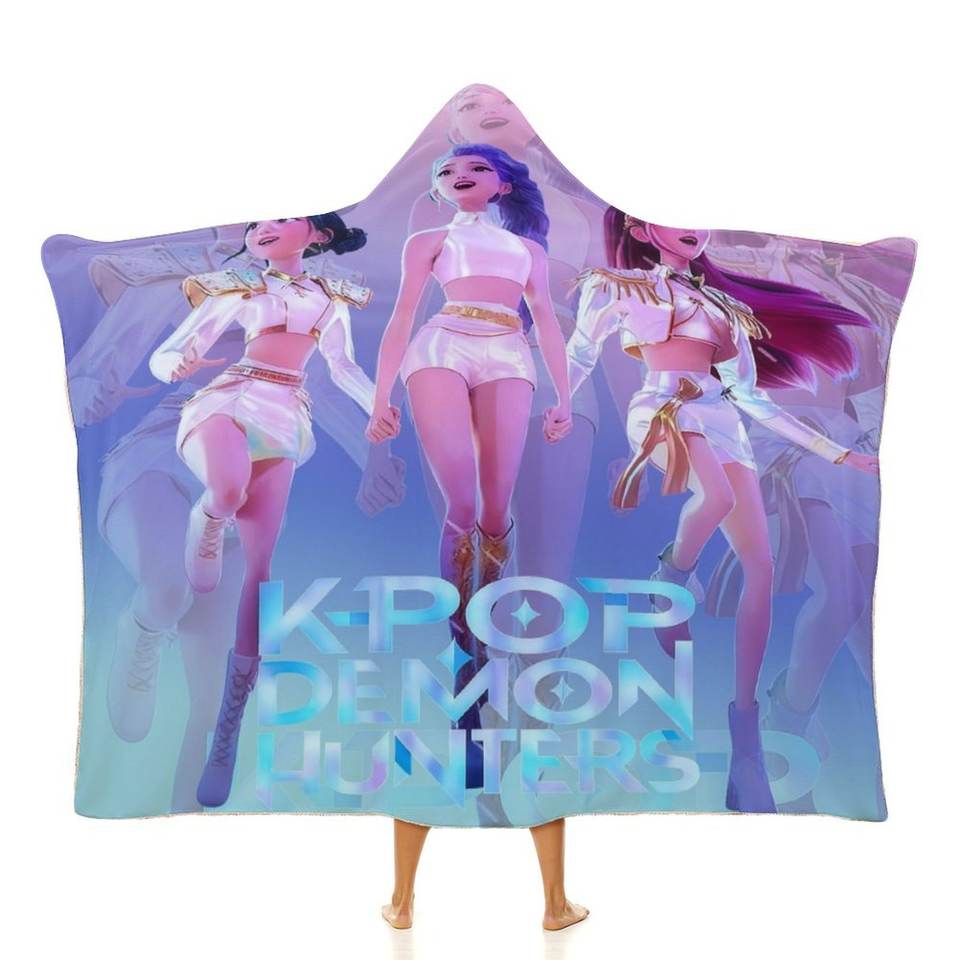 เสื้อคลุมฮู้ดผ้าห่มแบบสวมใส่ได้ลาย K-Pop Demon Hunters แบบขายส่งสั่งทำพิเศษ เนื้อผ้านุ่ม อุ่นสบาย ทำจากผ้าฟลีซและผ้าแฟลนเนล