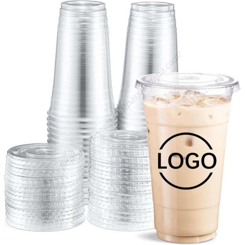 แก้วพลาสติกแบบใช้แล้วทิ้งสำหรับชานม กาแฟ สมูทตี้ พิมพ์โลโก้ได้ตามสั่ง ขายส่ง สำหรับงานปาร์ตี้ ของหวาน ใช้ซ้ำได้