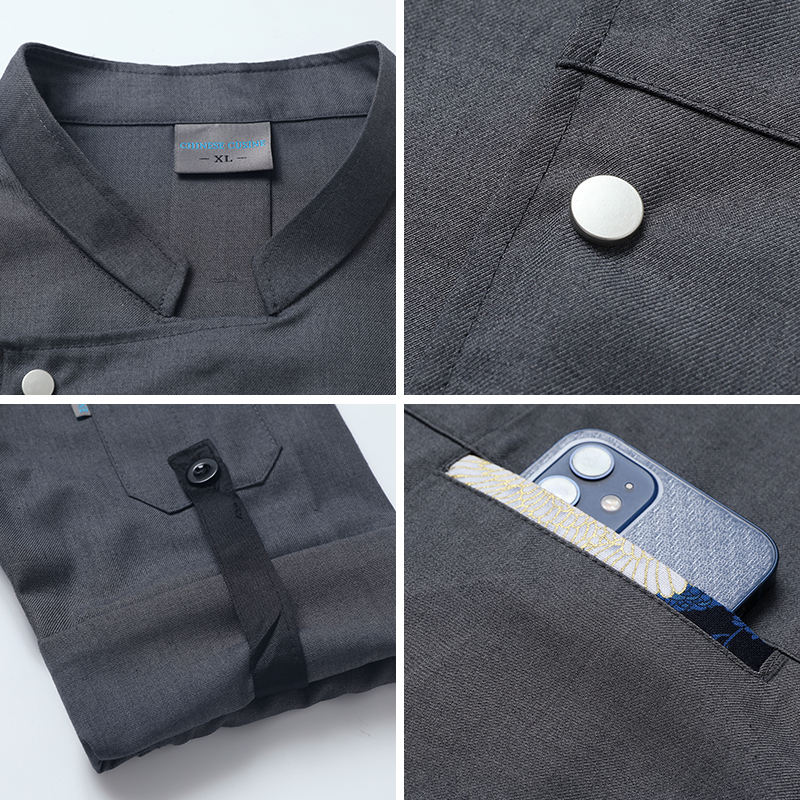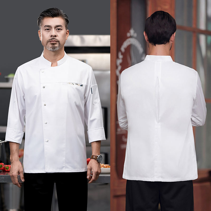เสื้อโค้ทยูนิฟอร์มเชฟสำหรับผู้ชายและผู้หญิงใส่ทำงานในห้องครัวโรงแรมโลโก้ตามสั่ง
