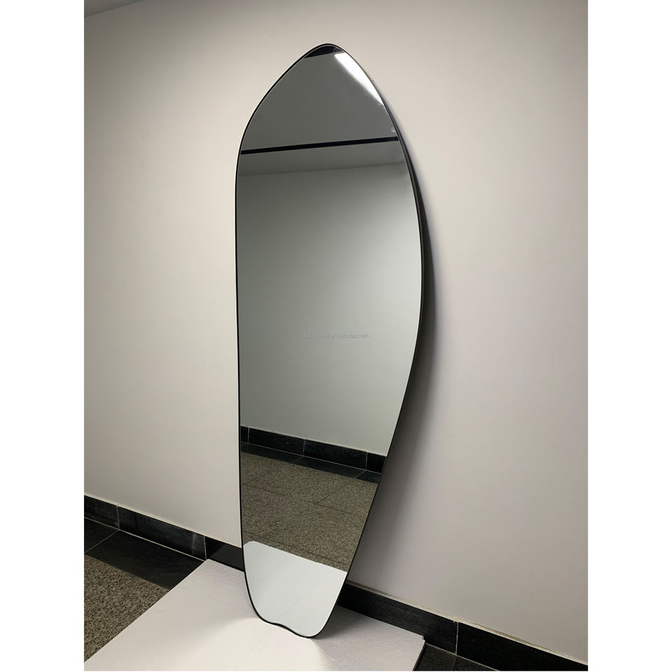 กระจกตั้งพื้นทรงโค้งแบบเต็มตัวขนาดใหญ่ กรอบเหล็กเงินสไตล์ร่วมสมัย ผลิตตามสั่งขายส่ง