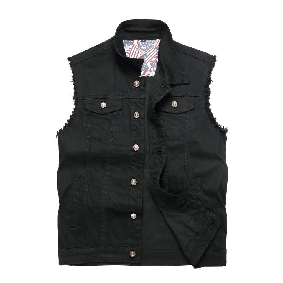 เสื้อกั๊กผ้ายีนส์ปิดซิปสีดำสำหรับผู้ชายเสื้อผ้าชั้นนอกสไตล์ฮิปฮอประบายอากาศผ้าฝ้ายนุ่ม