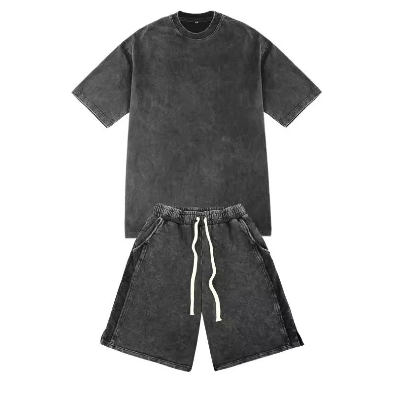 เซ็ตเสื้อยืดสำหรับผู้ชายชุดเสื้อยืดกางเกงขาสั้นชุดกีฬาลำลองมีตัวอักษรทำงานตามสั่ง