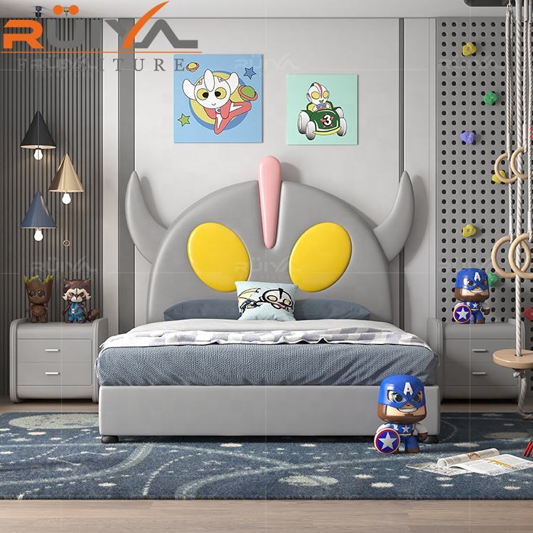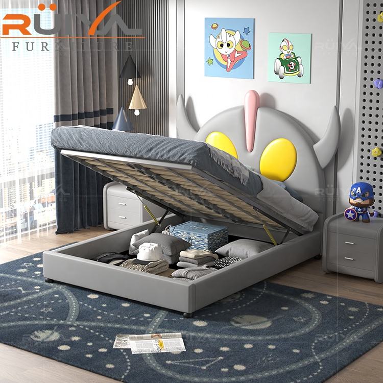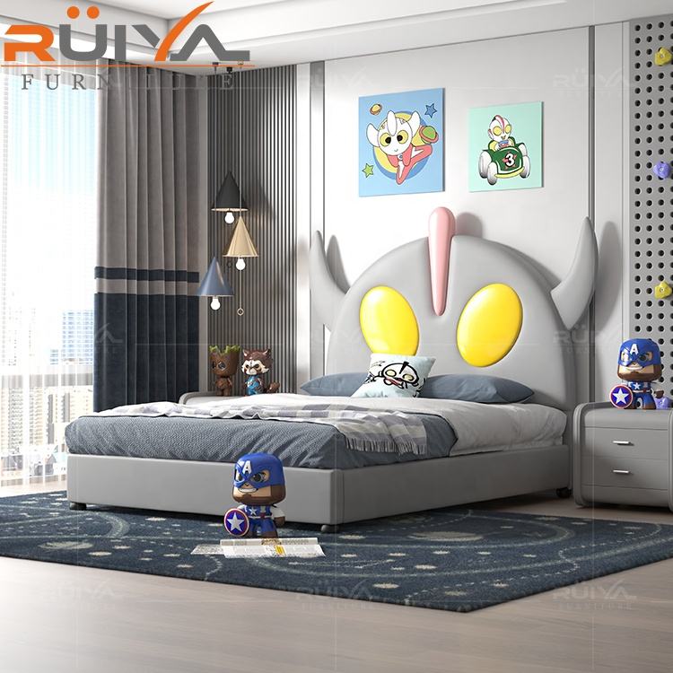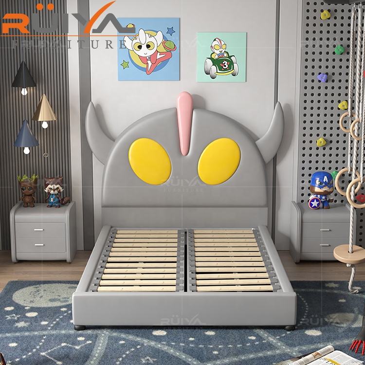 Wholesale Customized Modern Design Solid Wood Furniture cartoon Ultraman double bed with storage for kids