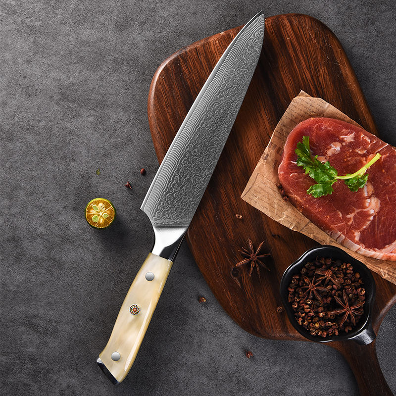 ชุดมีดทำครัวสำหรับเชฟมืออาชีพใบมีดเหล็กดามัสกัสสีเขียวขาว