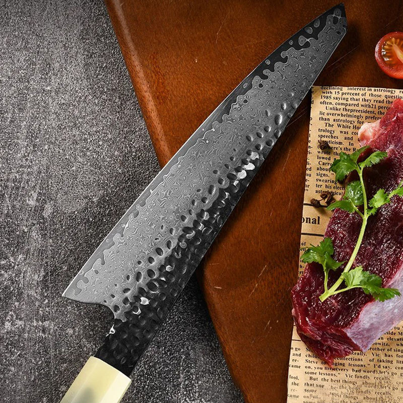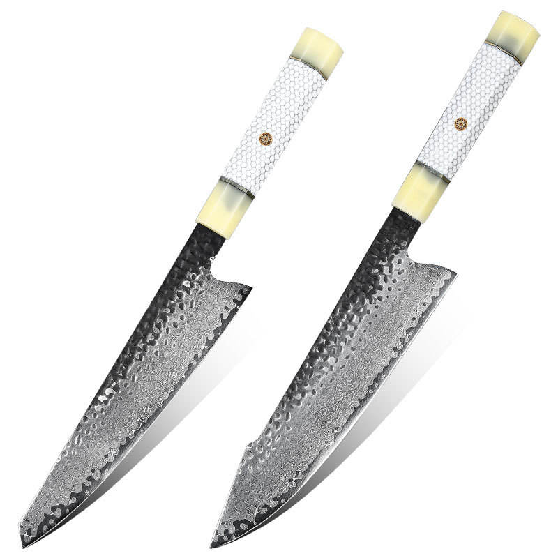 มีดเชฟเหล็กดามัสกัสพรีเมียม ด้ามเรซิ่น ดีไซน์ทันสมัยแบบขัดเงา รับผลิตตามสั่งแบบ OEM ODM สำหรับขายส่ง