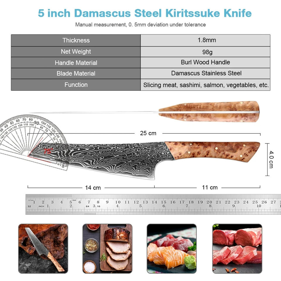 มีดเชฟเหล็กดามัสกัสมีดเชฟมืออาชีพมีดเชฟญี่ปุ่นด้ามจับตามหลักสรีรศาสตร์