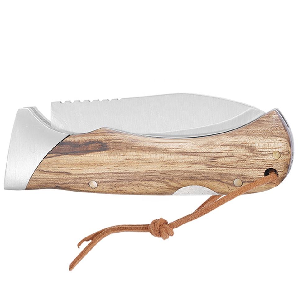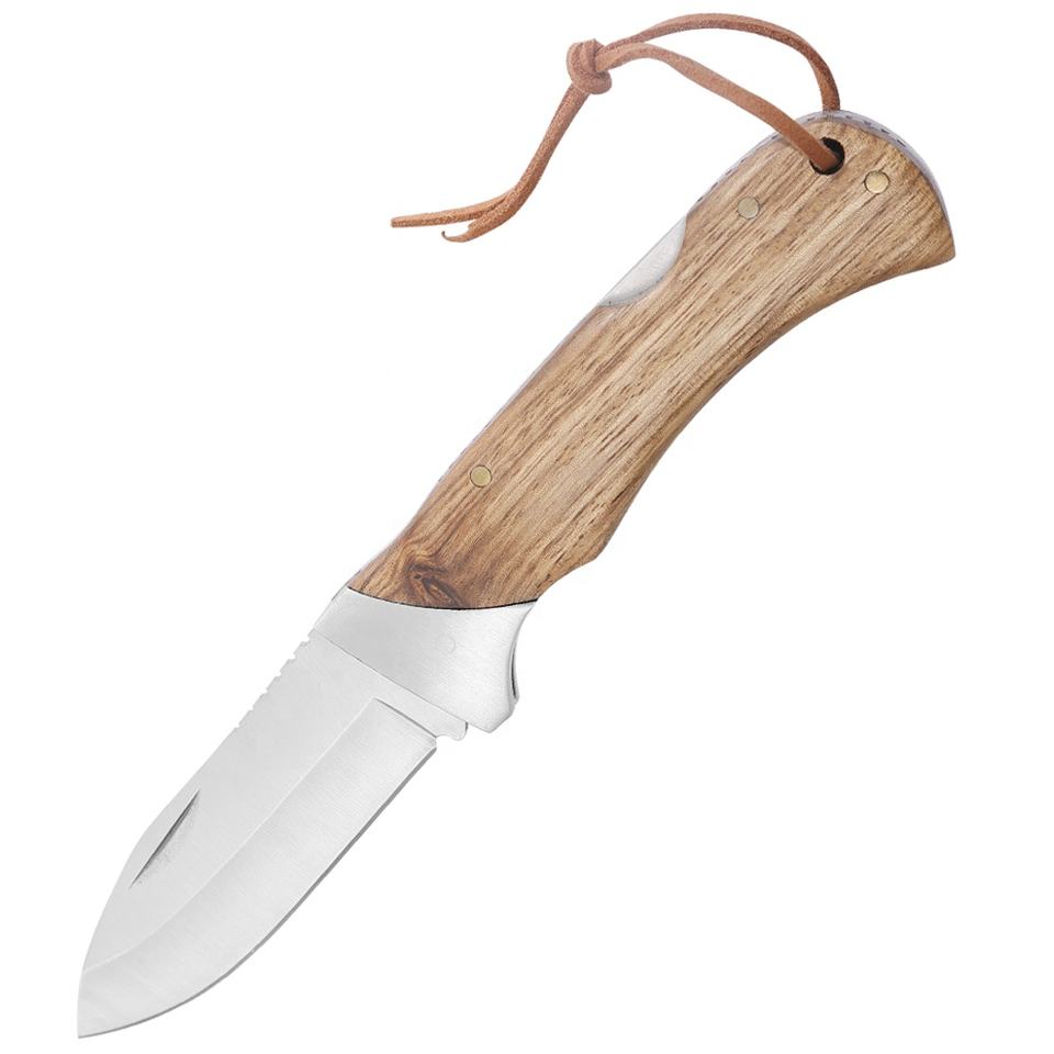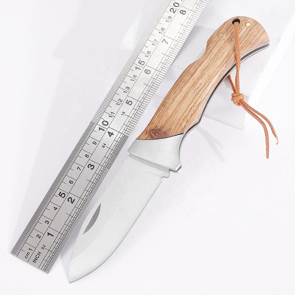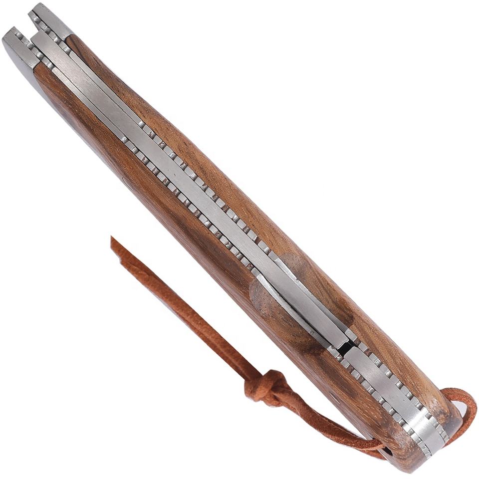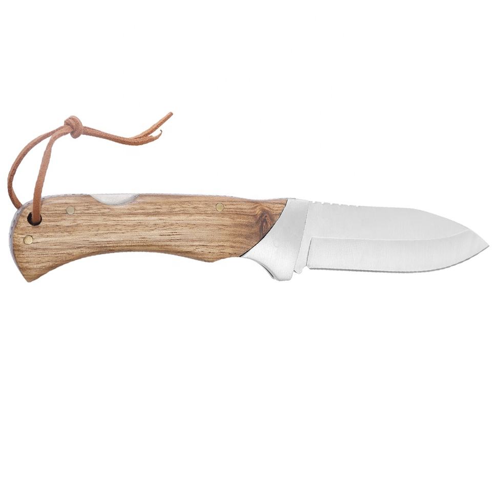 มีดพับอุตสาหกรรมงานทำด้วยมือด้ามจับสแตนเลสงานไม้มีดปลอกหนังงาน OEM ตามสั่ง