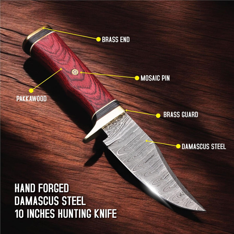 มีดสกินเนอร์เหล็กดามัสกัสทำมือด้ามด้ามไม้