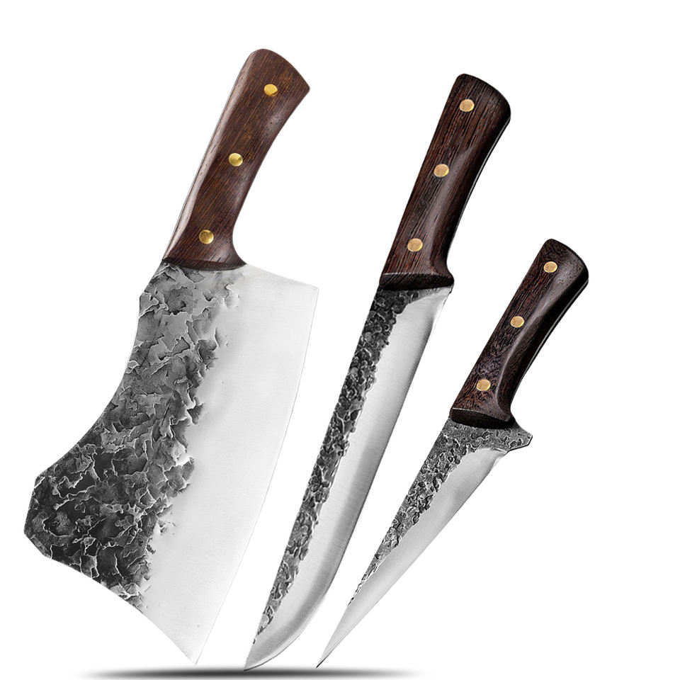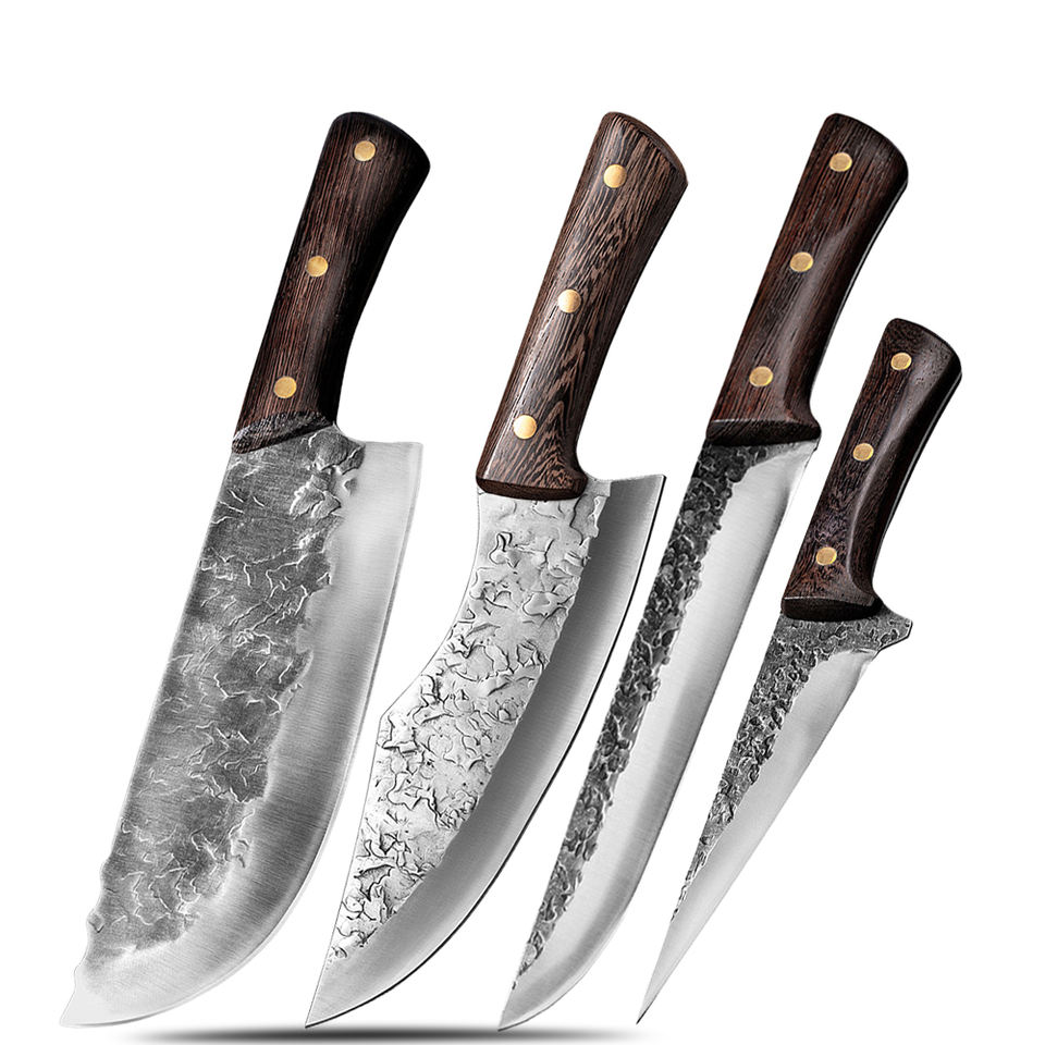 Wholesale Customized OEM ODM PRESTIGE BLADES Handmade Forged Carbon Steel 5-Piece Ambidextrous Kitchen Chef Knife Set