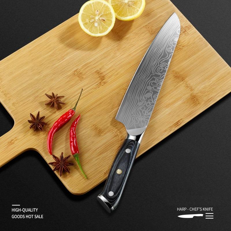 มีดเชฟเหล็กดามัสกัสสำหรับใช้ในครัวมีดเชฟเหล็กคลาสสิกคุณภาพสูงงานตามสั่ง