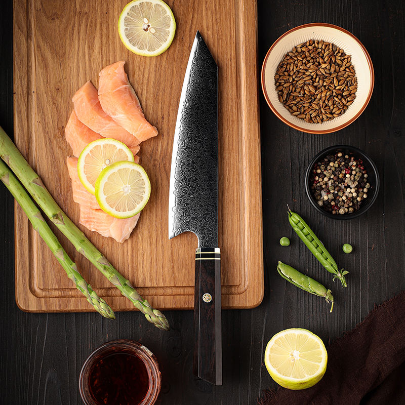 มีดเชฟเหล็กดามัสกัสญี่ปุ่นใช้ในครัวมีดตัดในครัวพร้อมที่จับไม้