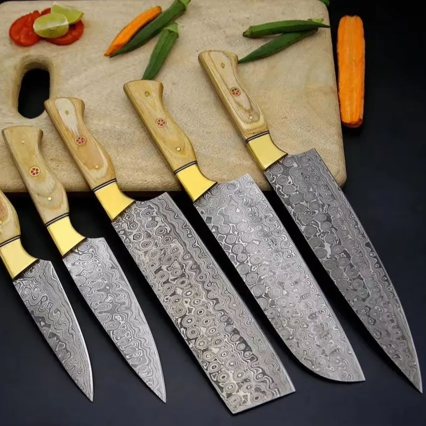 ชุดมีดทำครัวเหล็กคาร์บอนแฮนด์เมดมีดด้ามไม้สำหรับเชฟ
