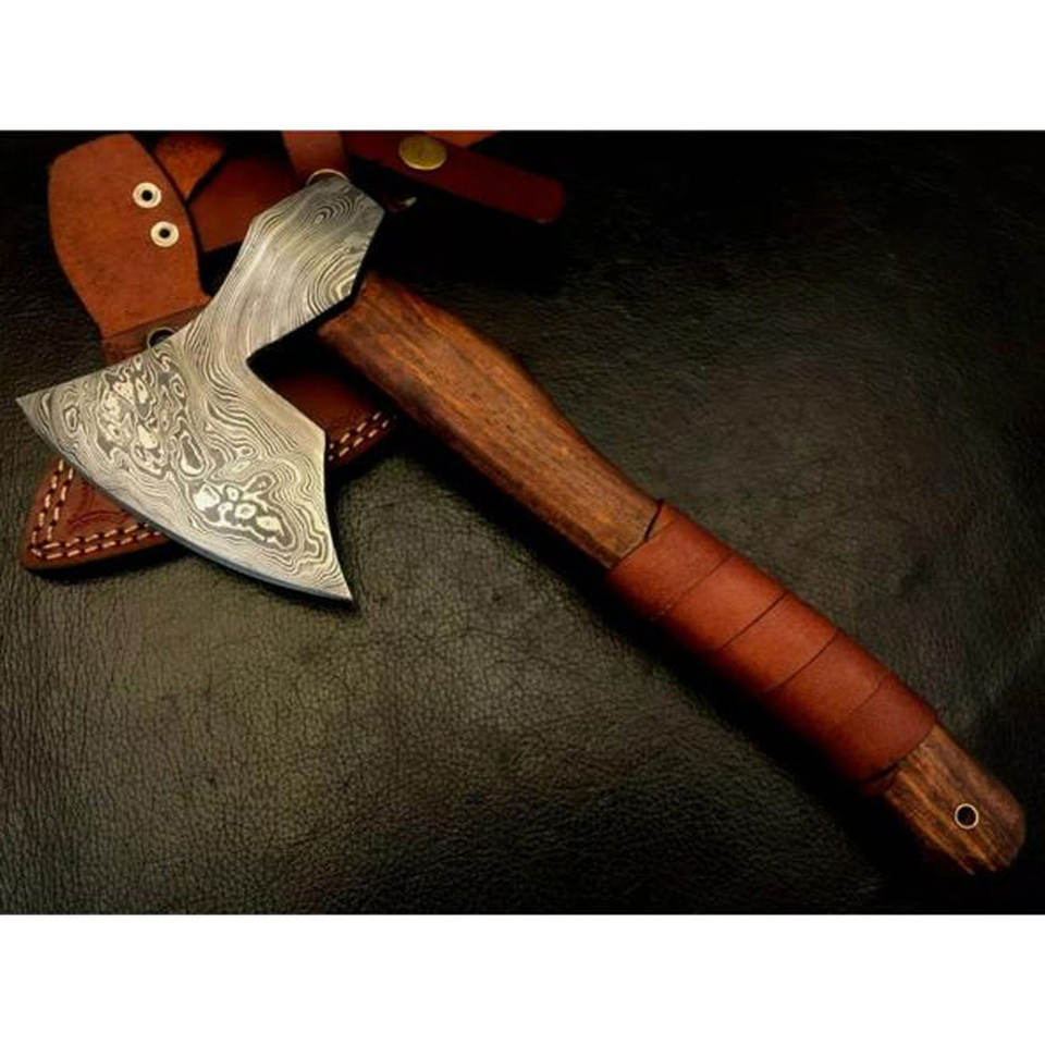Wholesale Customized Premium Quality OEM ODM Service Handmade Axe Engraved Carbon Steel Head & Leather Sheath Outdoor Camping