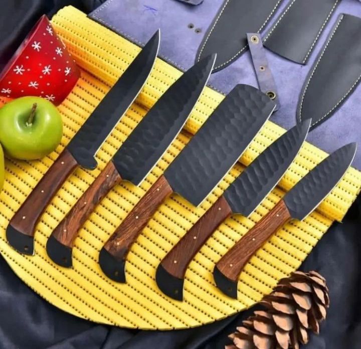 Wholesale Customized Premium Quality OEM ODM Professional Black Coated Handmade Stainless Steel Chef Cooking Kitchen Knife Set