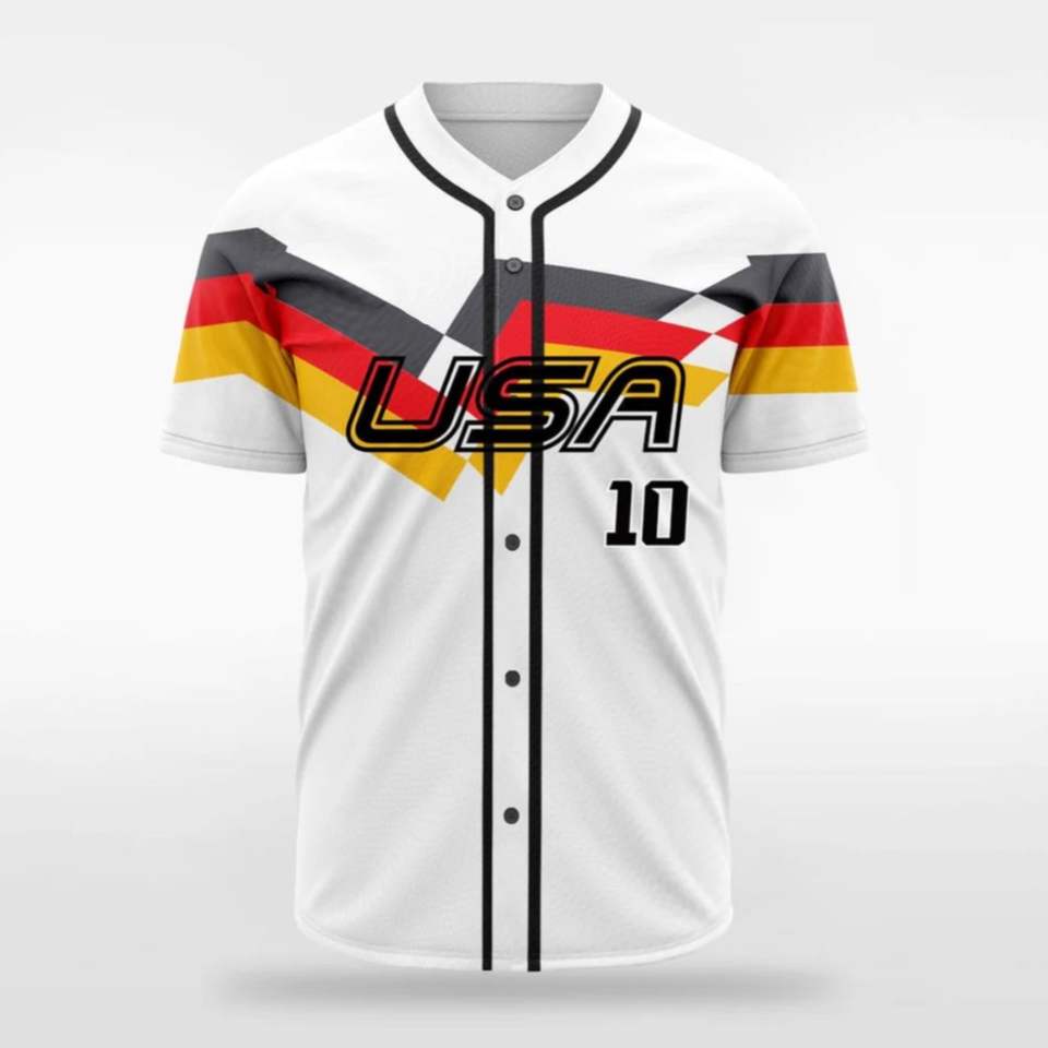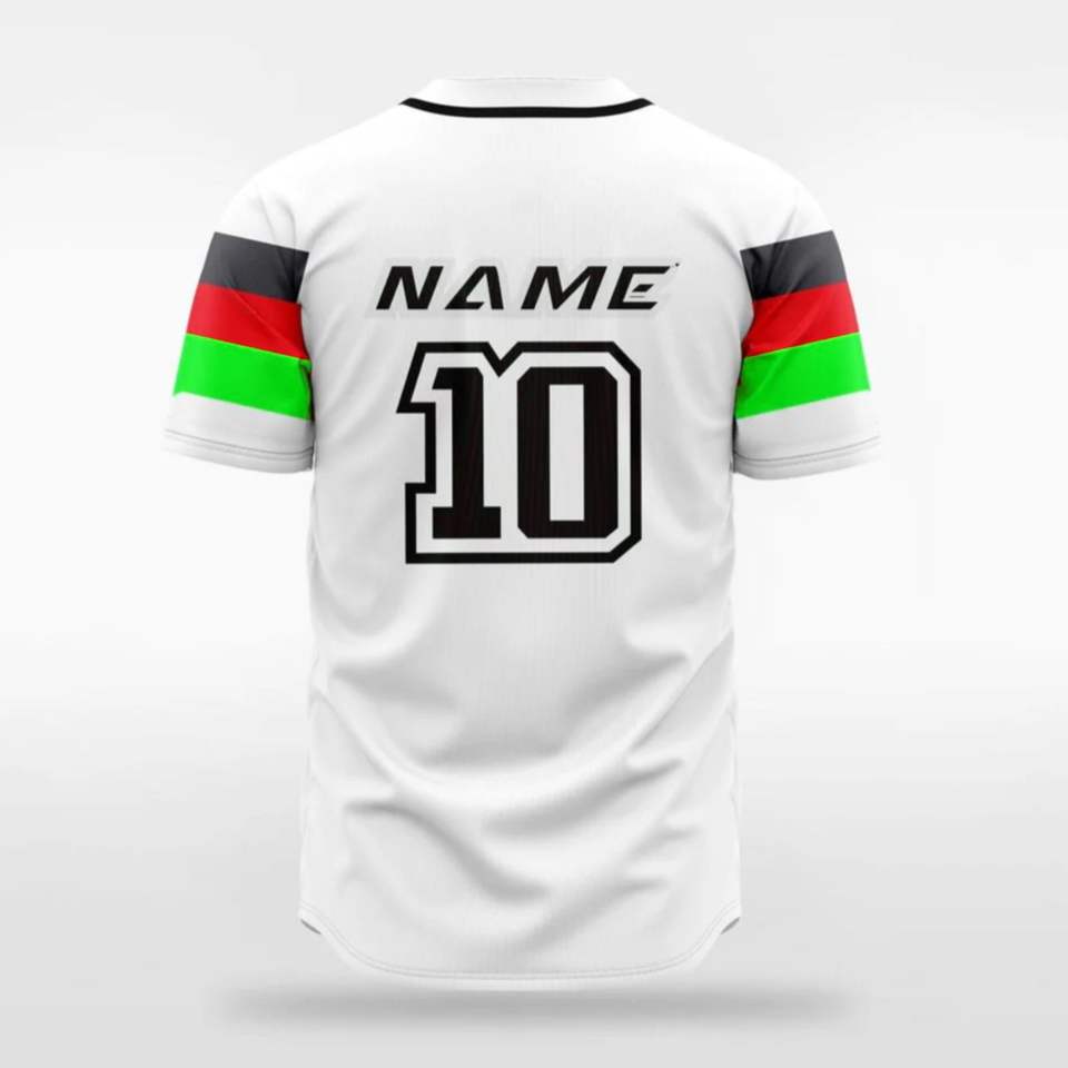 เสื้อเบสบอลแบบสั่งทำขายส่ง พิมพ์ลายแบบซับลิเมชั่น กระดุมเต็มตัว ดีไซน์แบบอเมริกัน สีสันสดใส ผ้าที่ยั่งยืนได้ คุณภาพสูง