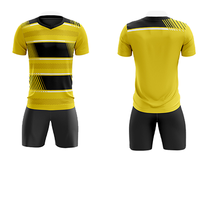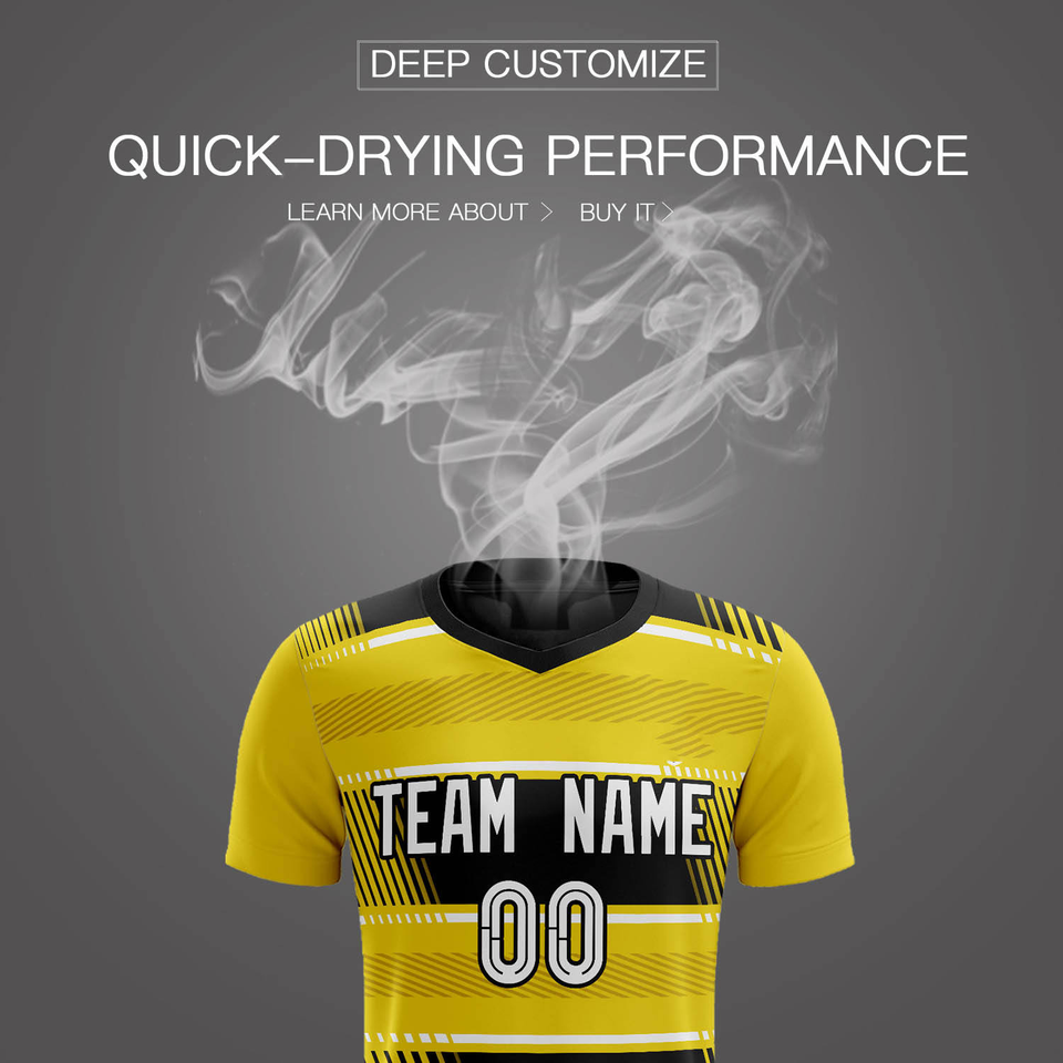 ชุดฟุตบอลสีเหลืองและสีดำชุดเสื้อเจอร์ซีย์ฟุตบอลแห้งเร็วงานตามสั่ง