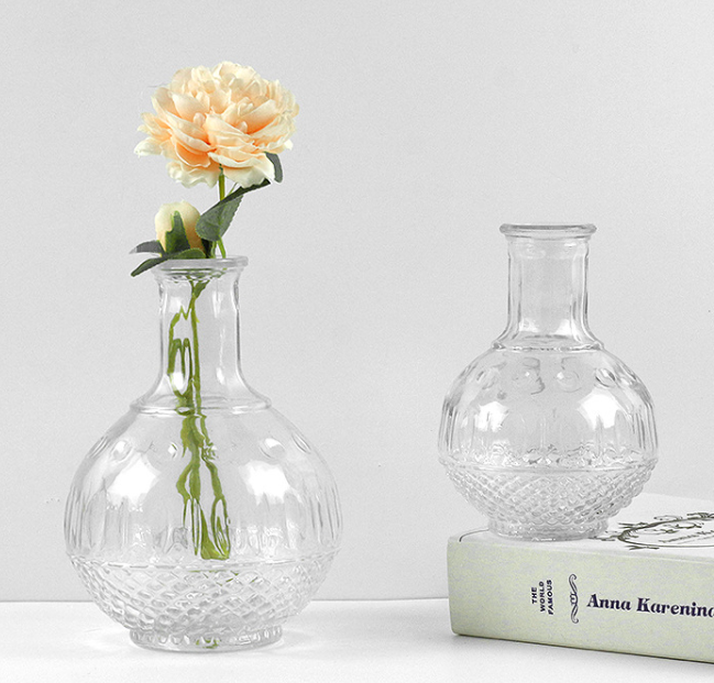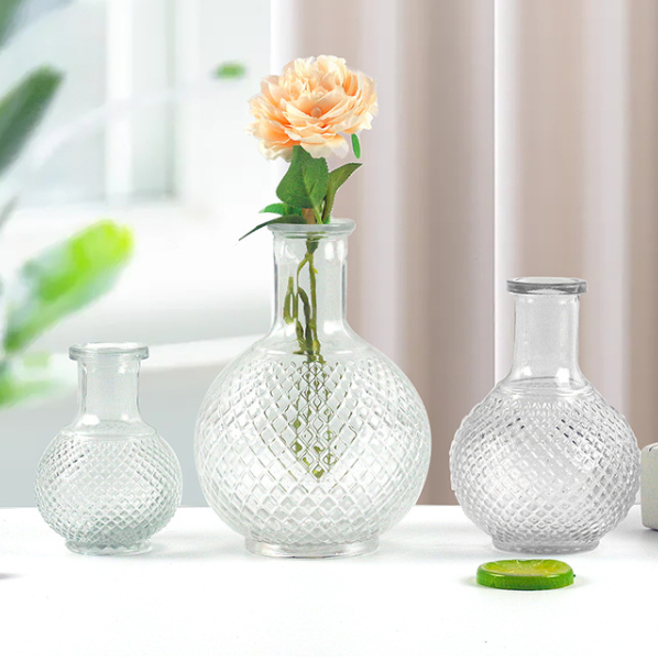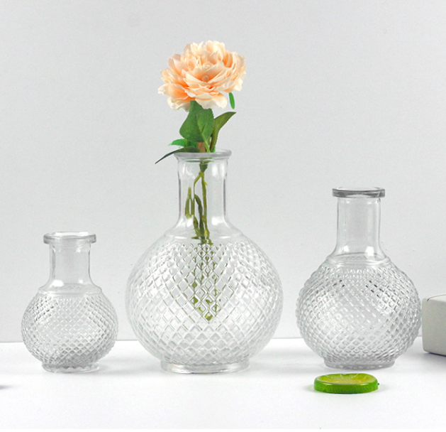 แจกันแก้วใสสไตล์นอร์ดิกสำหรับตกแต่งบ้าน,แจกันดอกไม้สไตล์ฝรั่งเศสหรูหราโคมไฟ Relievo แบบกำหนดเอง