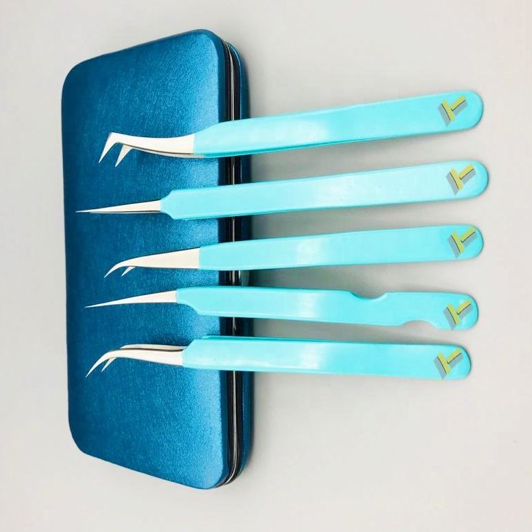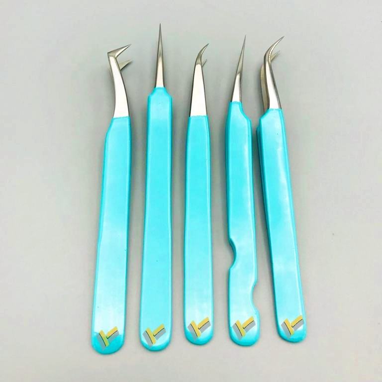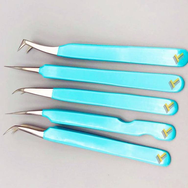 แหนบต่อขนตาทำจากเหล็กคงทนแบบญี่ปุ่นพร้อมผงสีฟ้าเคลือบสีเงิน
